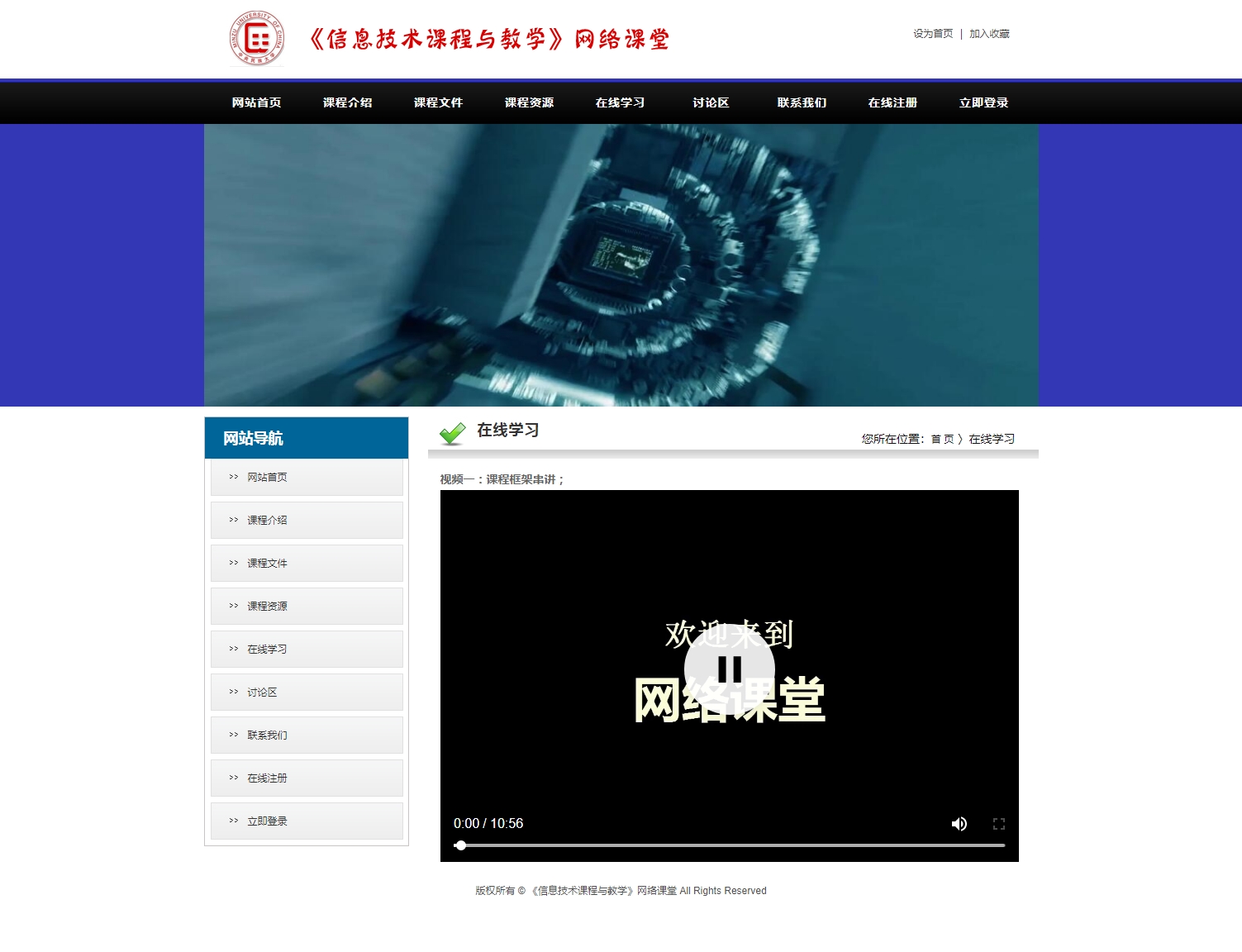 《信息技术课程与教学》网络课堂 10页面 学校学院教育培训主题 带设计说明 本地视频 asp+access数据库注册登录留言功能(0/0)