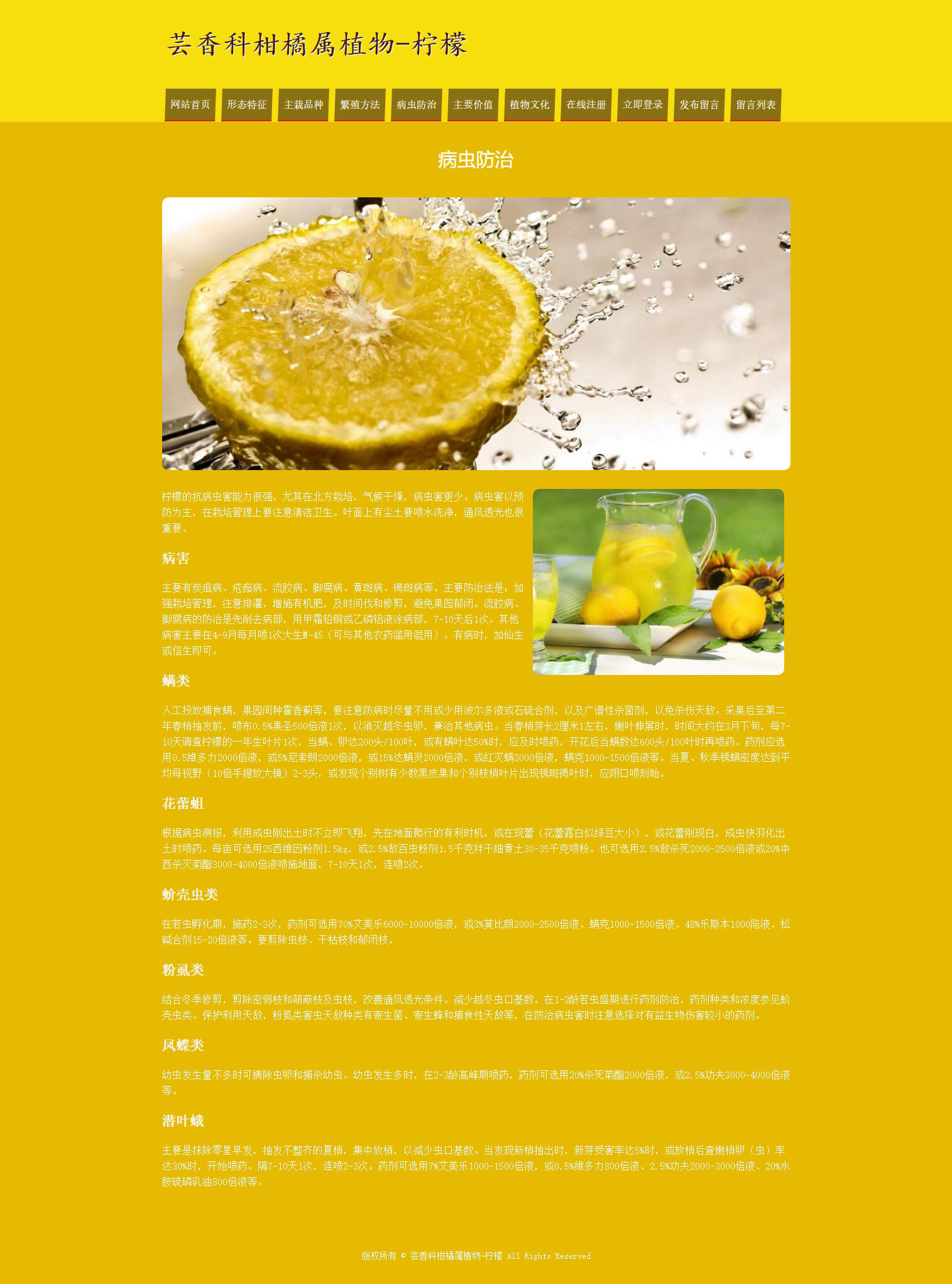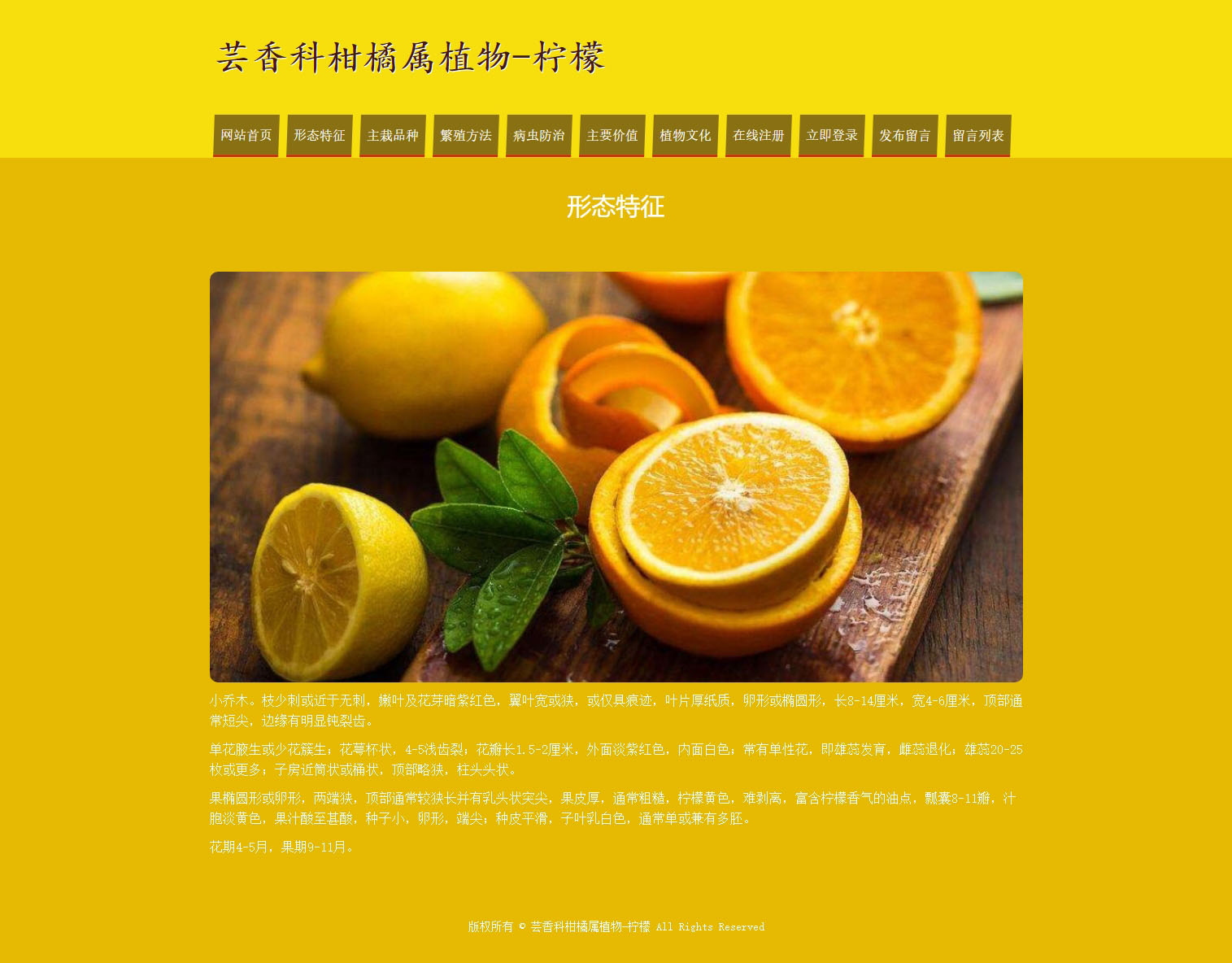 芸香科柑橘属植物-柠檬 11页面 水果 html5+css3布局 带设计说明 JQuery图片轮播特效 ASP+ACCESS数据库 注册登录留言功能 搜索修改删除留言功能(增删查改)(0/0)