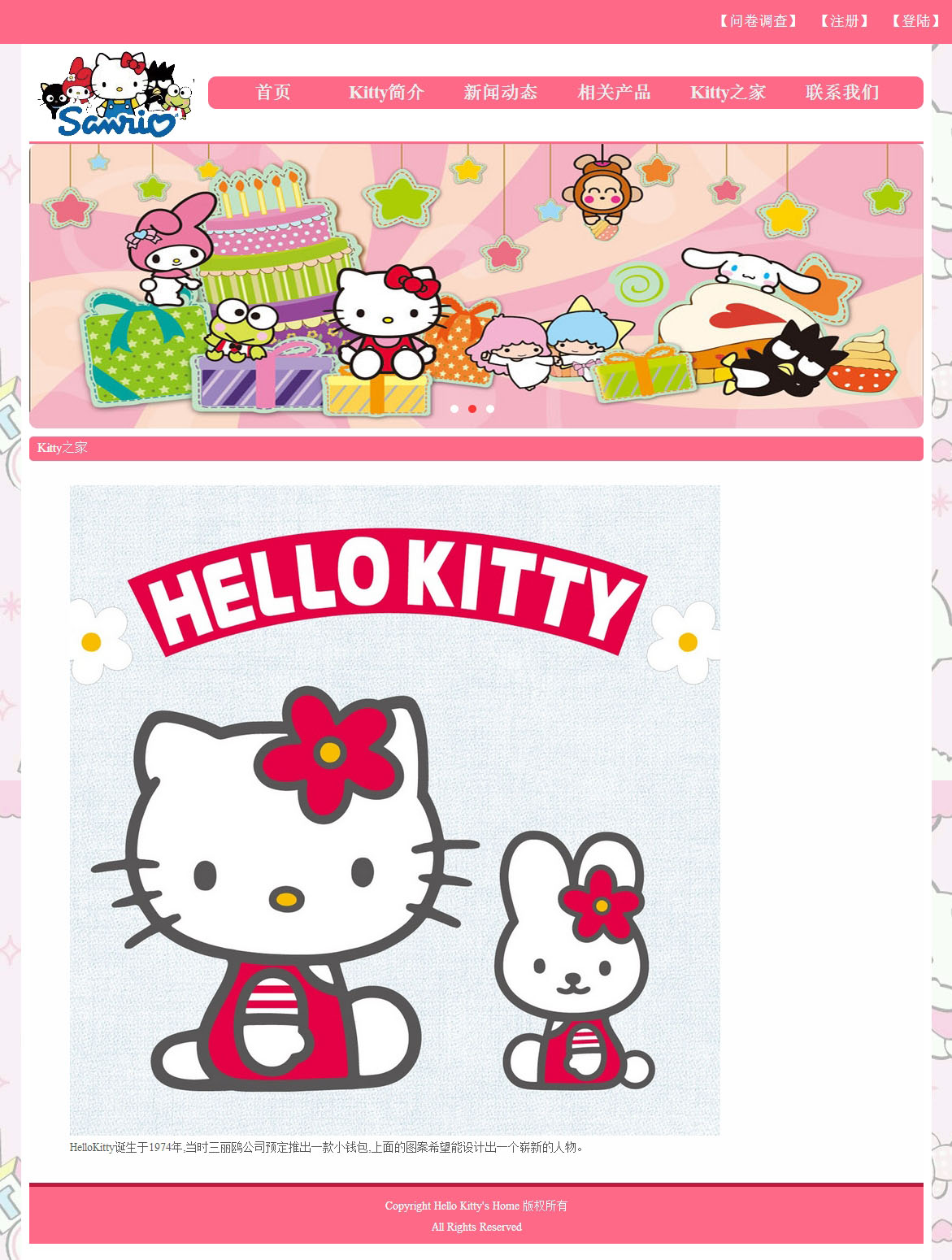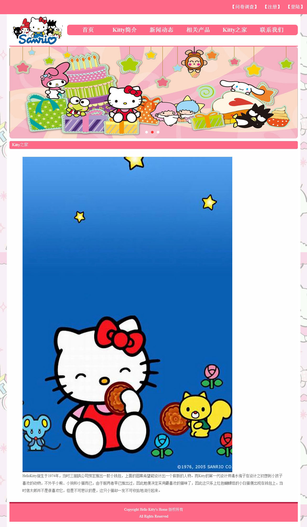 Hello Kitty's Home 55页面(50页面) 日本卡通动漫 带背景音乐 视频 设计说明 JS图片轮播 导航(0/0)