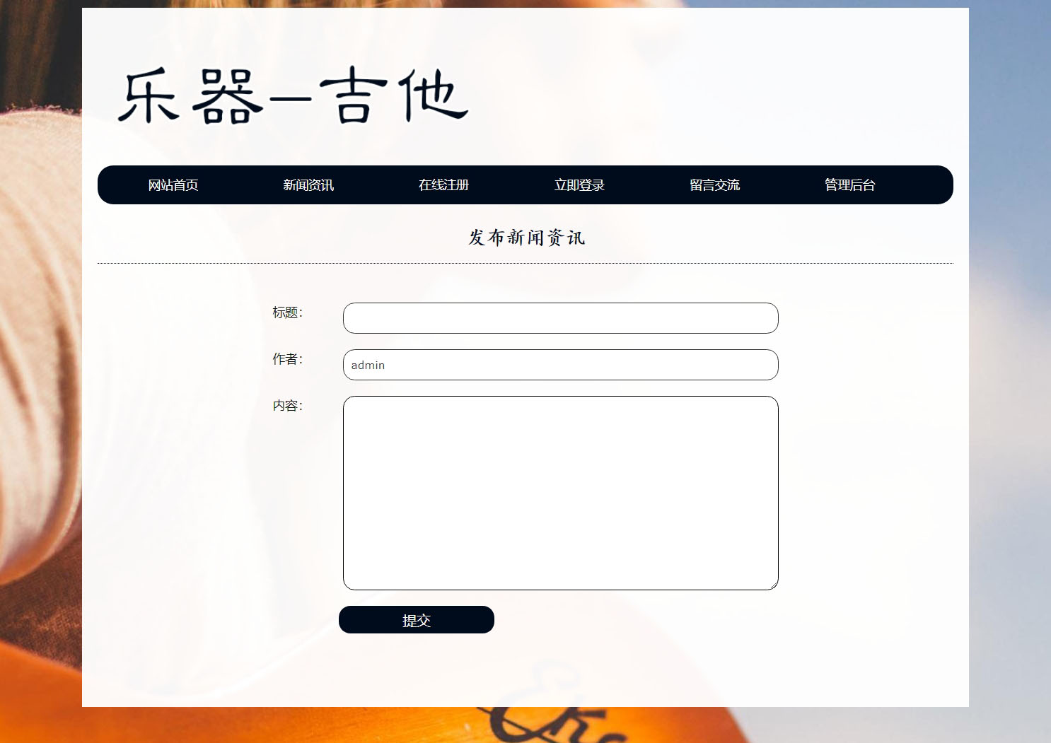 乐器-吉他 15页 世界著名三大乐器 HTML5 带设计说明 JS轮播特效 ASP+ACCESS数据库 注册登录留言 用户权限管理 admin管理员 新闻发布 新闻管理 用户管理 留言管理 搜索查看修改删除功能(增删查改)(0/0)