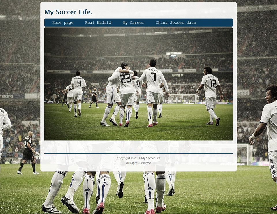 My Soccer Life. 5页面 我的足球生活 外文英文版本 体育 足球主题 带图片轮播特效 背景音乐 版本