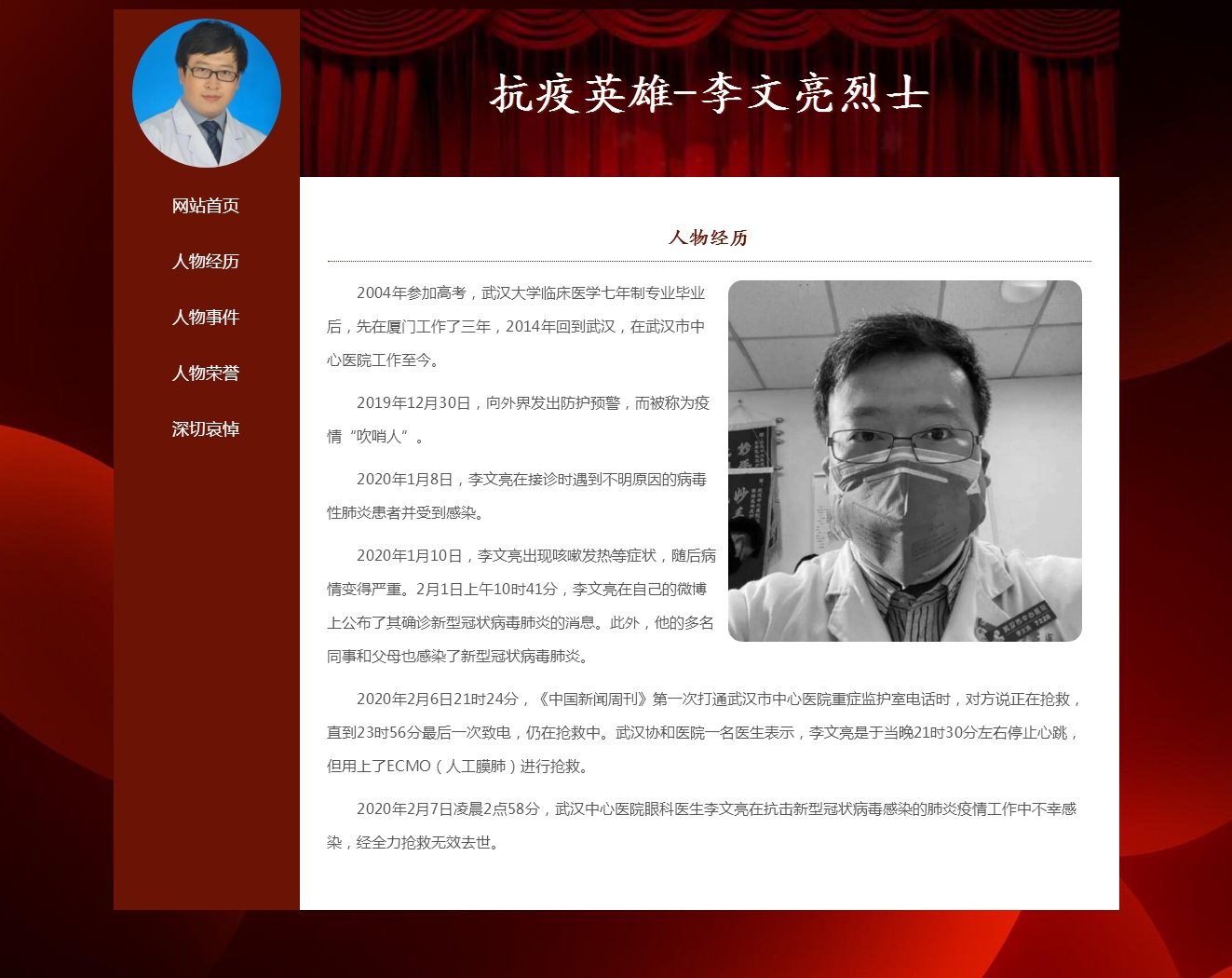 抗疫英雄-李文亮烈士 5页面 武汉肺炎疫情热点主题(0/0)