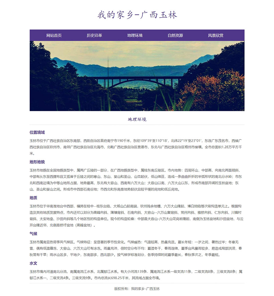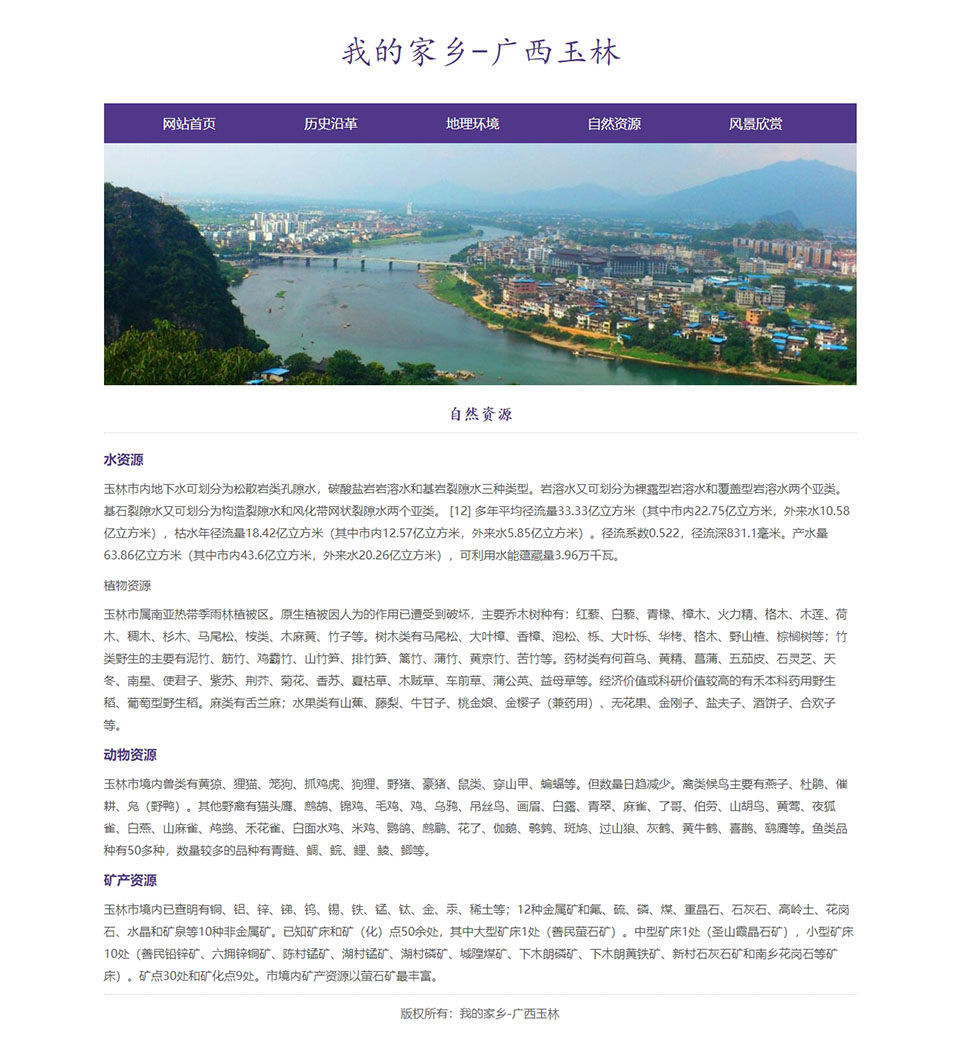 我的家乡-广西玉林 5页面 HTML5 家乡主题 带设计说明 (0/0)