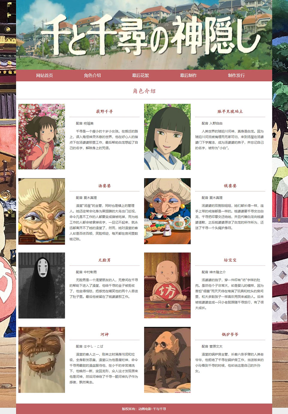 动画电影-千与千寻 5页面 HTML5 带设计说明 背景音乐 JS图片轮播特效(0/0)