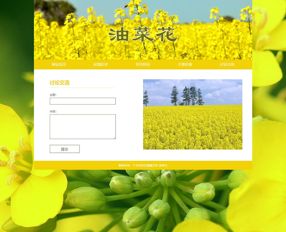 十字花科芸薹属芸苔-油菜花 5页面 HTML5 带背景音乐 JS图片轮播特效 留言表单(0/0)
