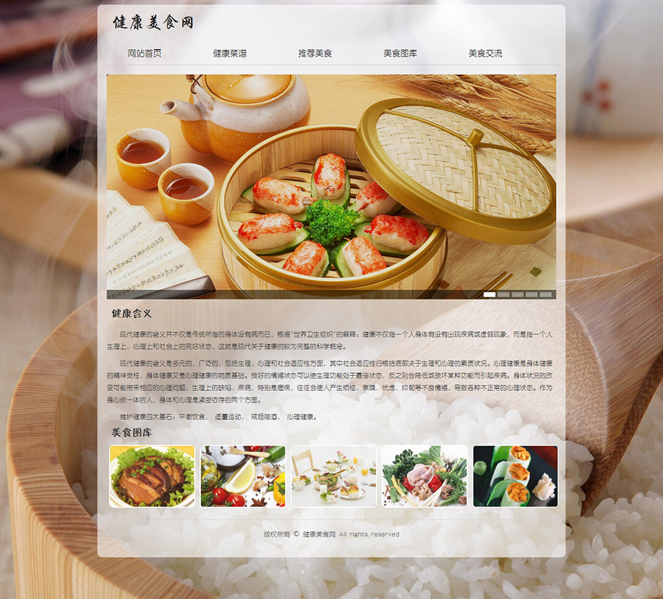 健康美食网 5页面 菜谱健康饮食主题 带设计说明 图片轮播特效 留言表单 背景音乐(0/0)