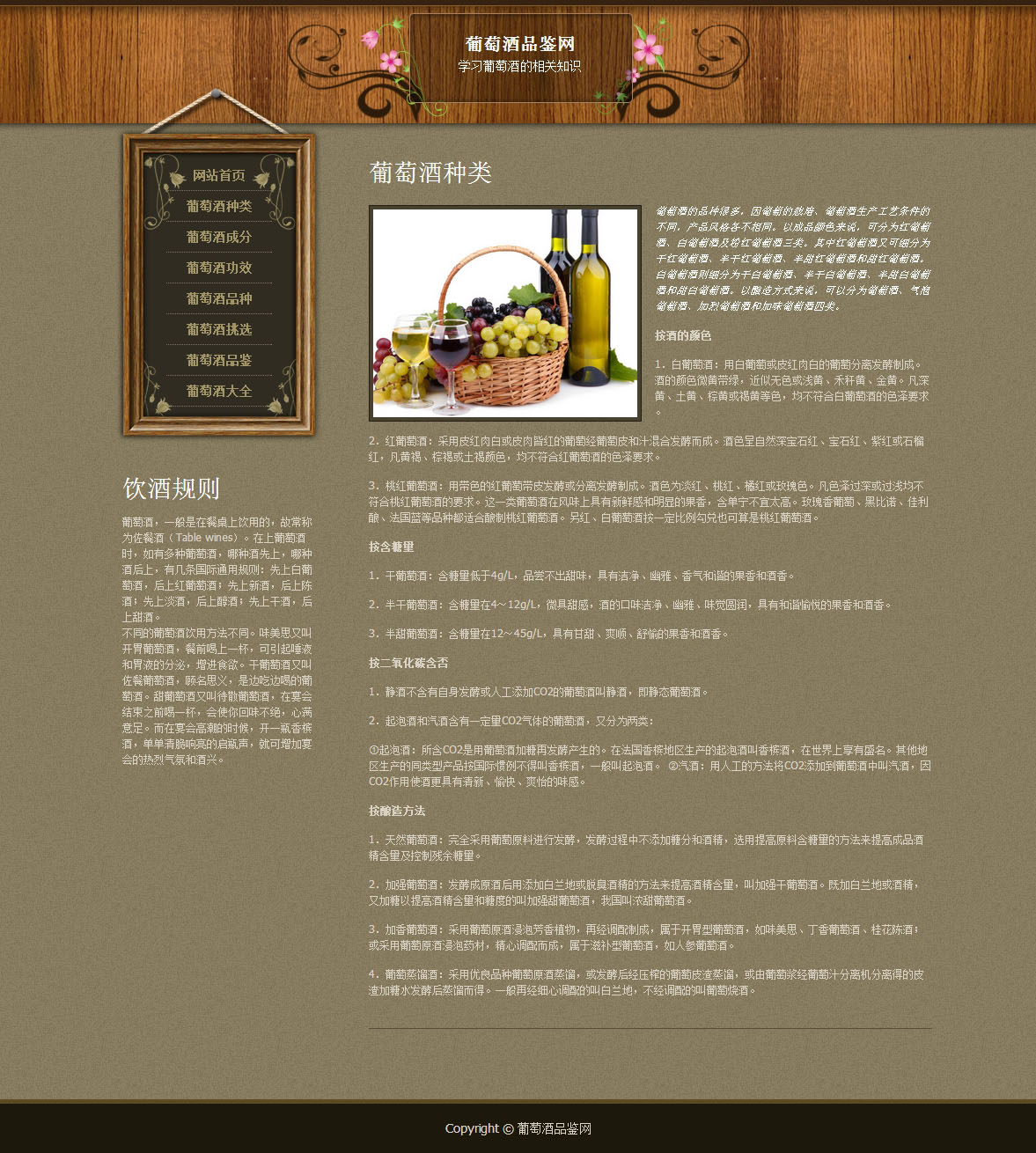 葡萄酒品鉴网 8页面 红酒洋酒饮品主题 带背景音乐 设计入流(0/0)