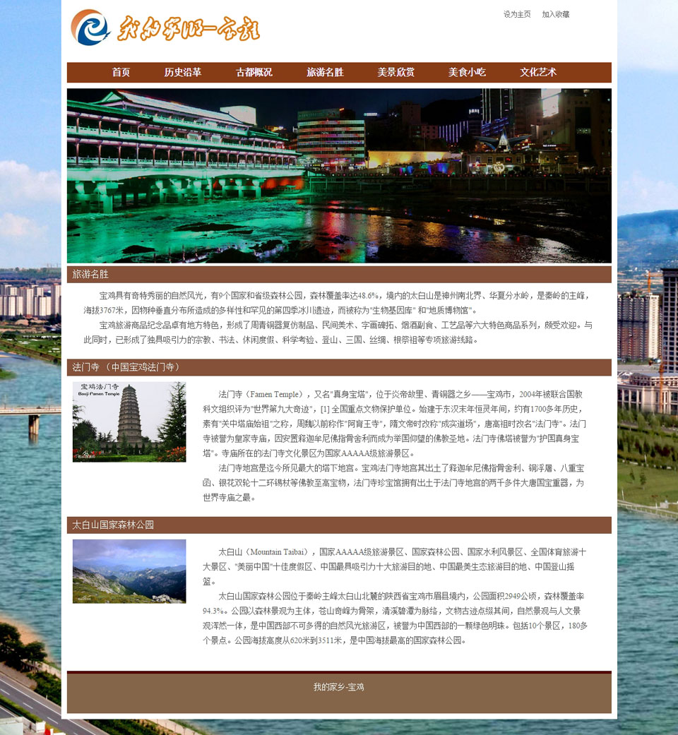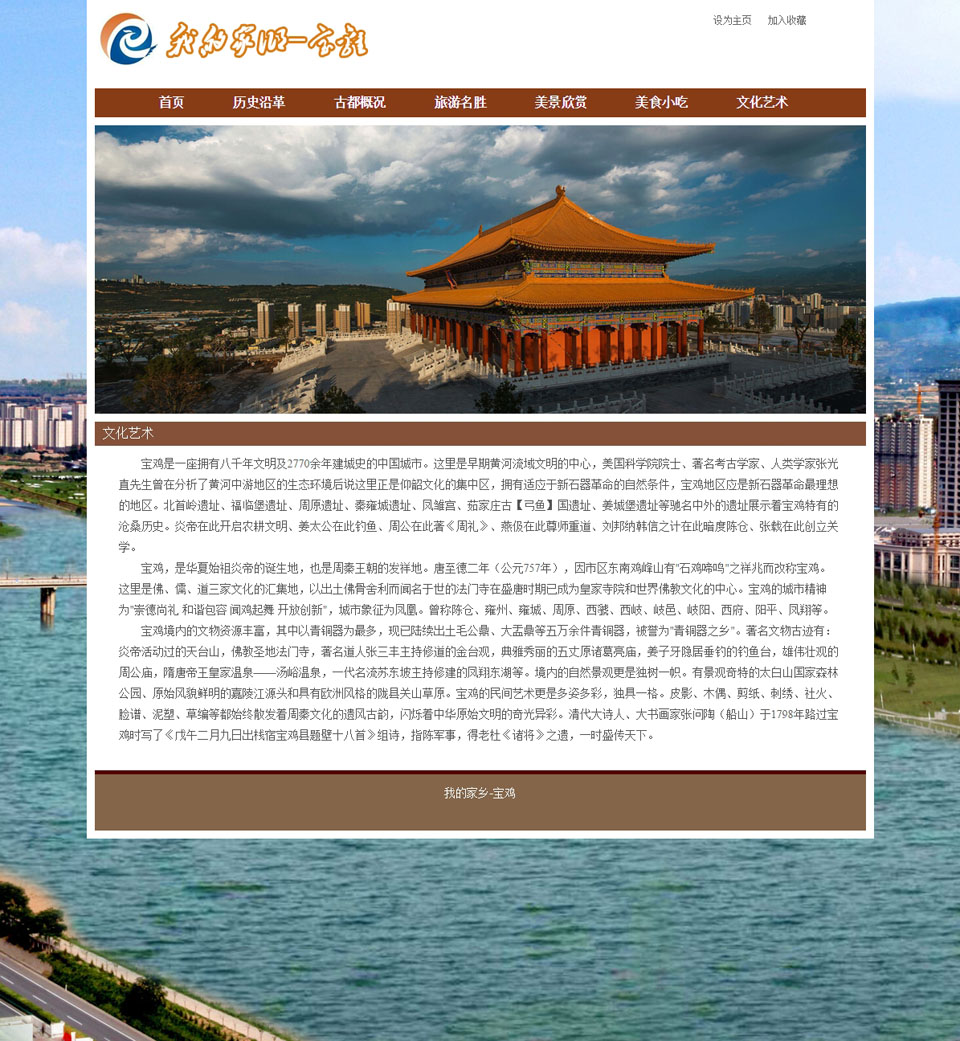 我的家乡-陕西宝鸡 7页面 带设计说明 JS轮播特效 飘动文字 flash轮播动画 在线视频(0/0)