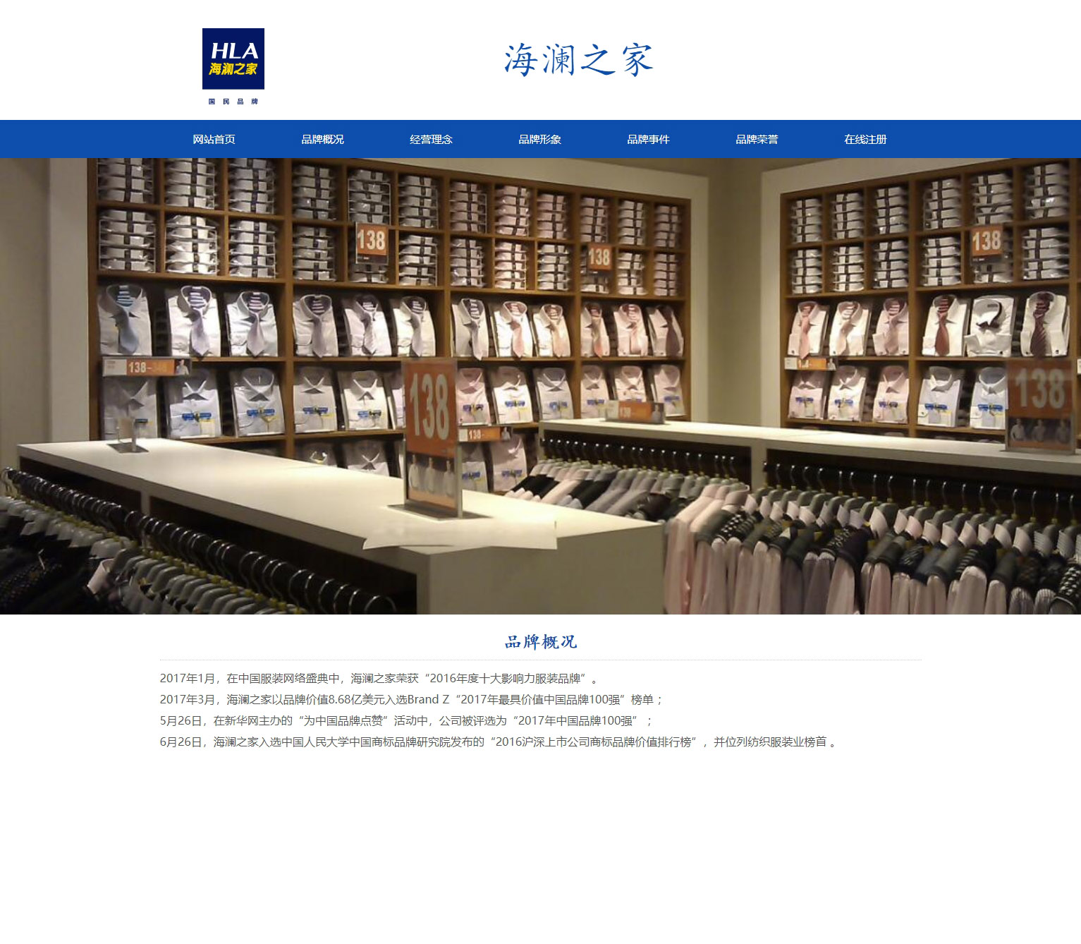 海澜之家集团股份有限公司 7页面 服装品牌 国货 国民品牌 HTML5 带设计说明 jquery轮播特效 注册表单 表单验证(0/0)