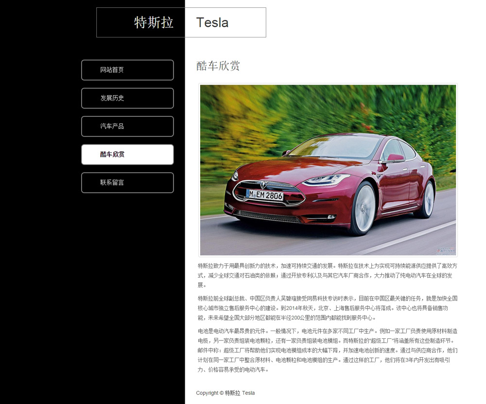 特斯拉汽车公司Tesla 15页面 美国纯电动汽车旗舰品牌 带设计说明 背景音乐 联系表单 gif动图(0/0)