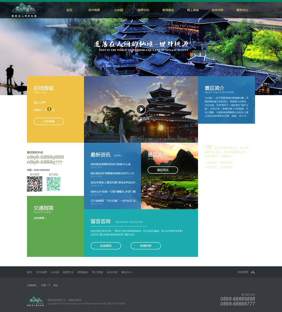 世外桃源 12页面 景区旅游旅行官方网站 带导航下拉 导航上拉 JS图片特效 侧栏导航(13页面版本带注册表单页面)(0/0)