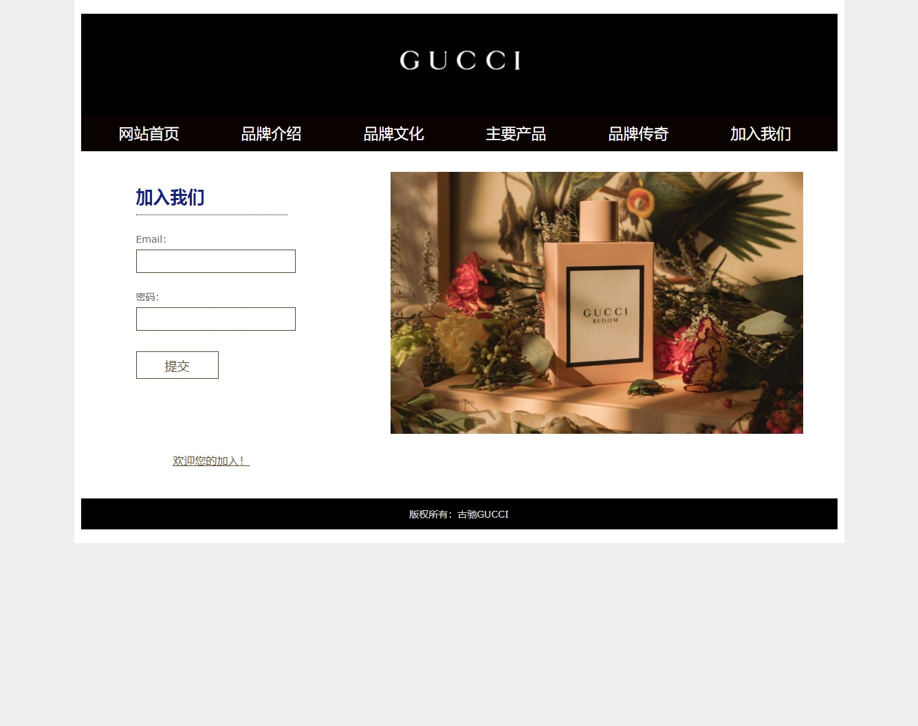 古驰GUCCI 11页面 全球奢侈品品牌 电商企业主题 带设计说明 flash轮播动画 JS图片轮播特效 登录表单 三级页面 html5+css3(0/0)