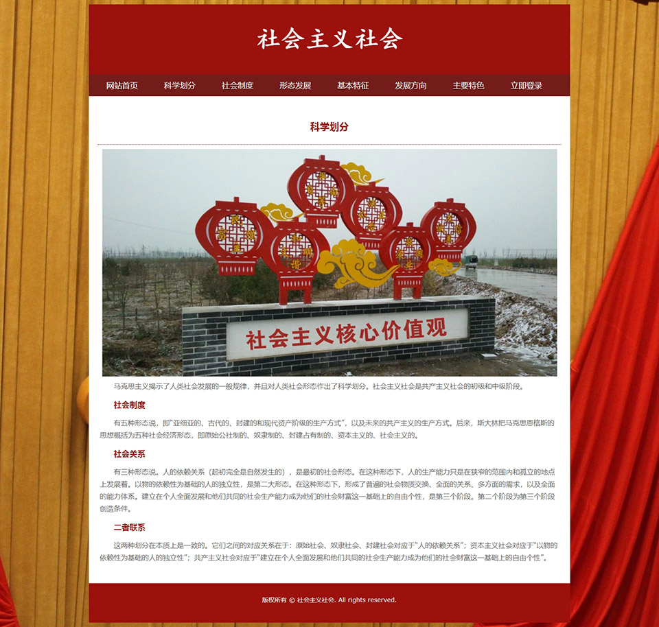 社会主义社会 8页面 中国特色社会主义 HTML5 media 响应式布局 带登录表单 jquery图片轮播特效 图片点击放大特效 JS表单验证(0/0)