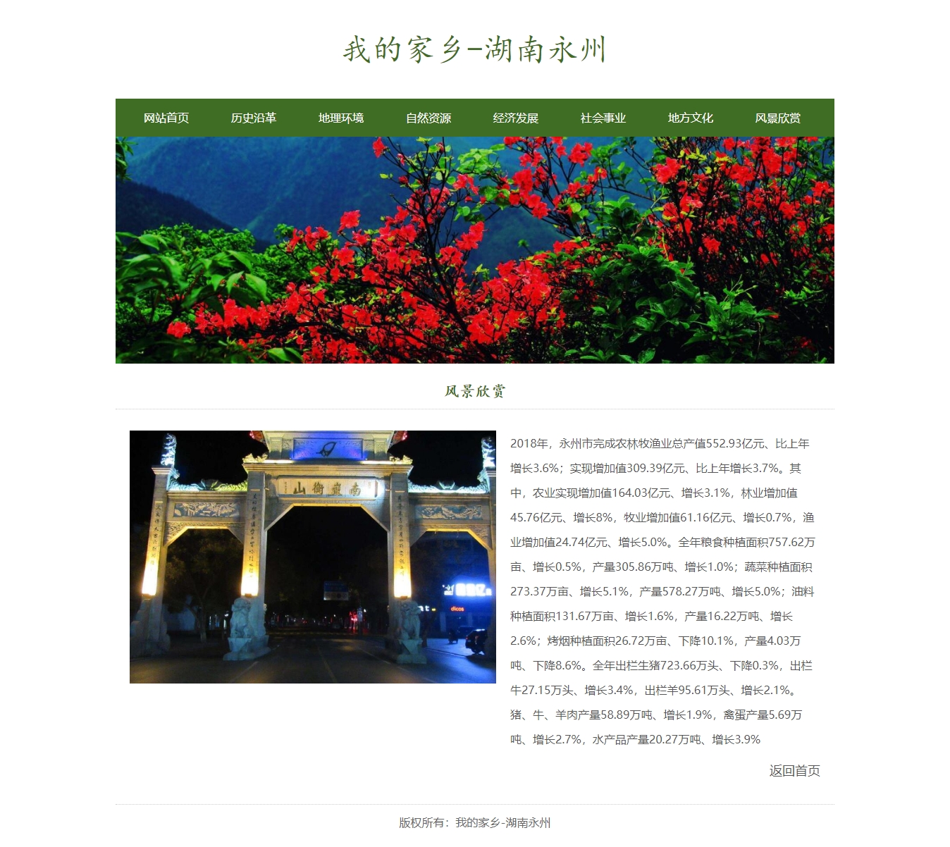 我的家乡-湖南永州 12页面 HTML5 家乡主题 带设计说明 (0/0)