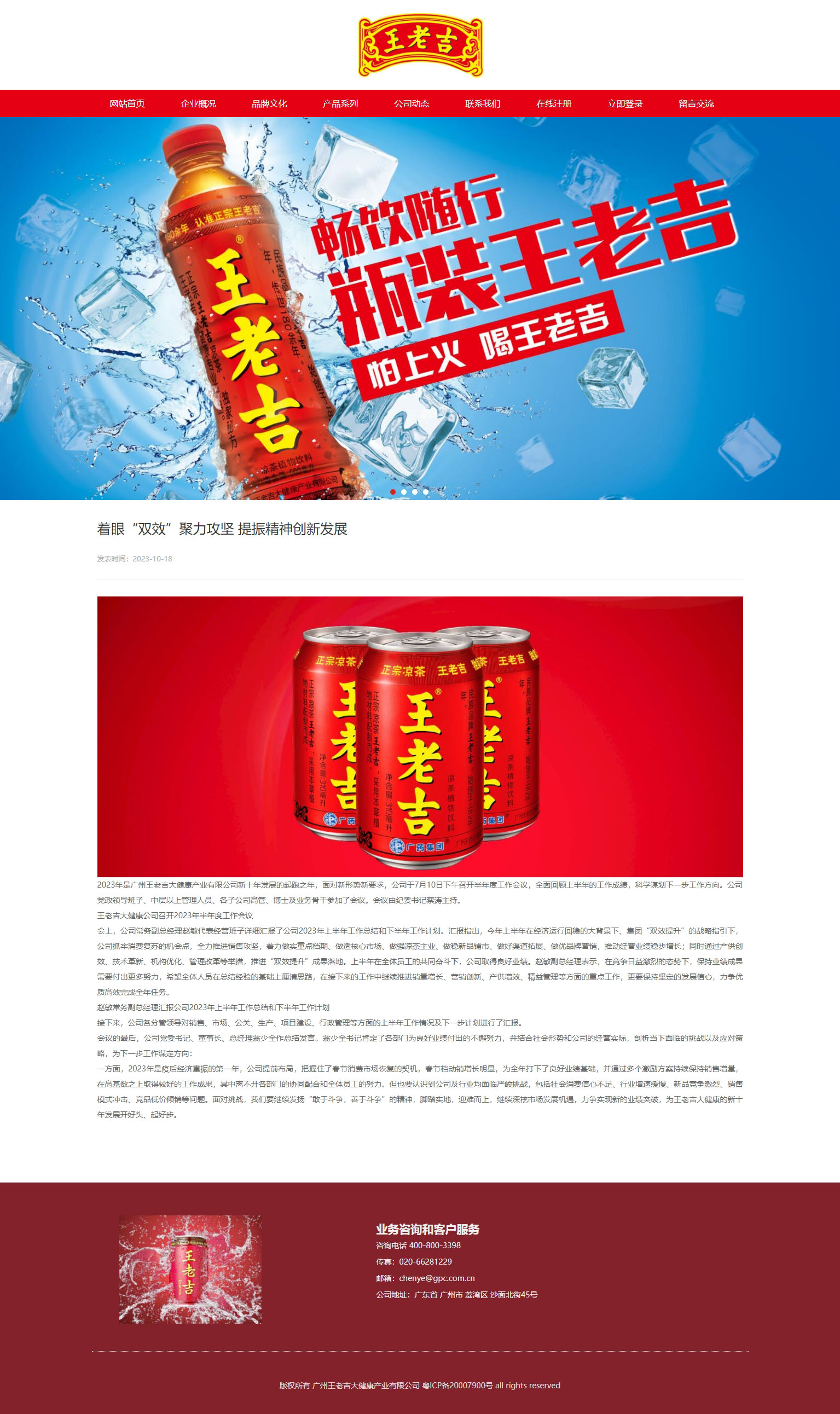 广州王老吉 11页面 广药集团旗下公司 凉茶始祖 带设计说明 图片轮播特效 TAB切换 三级页面 二级导航 注册登录留言表单 JS表单验证(0/0)