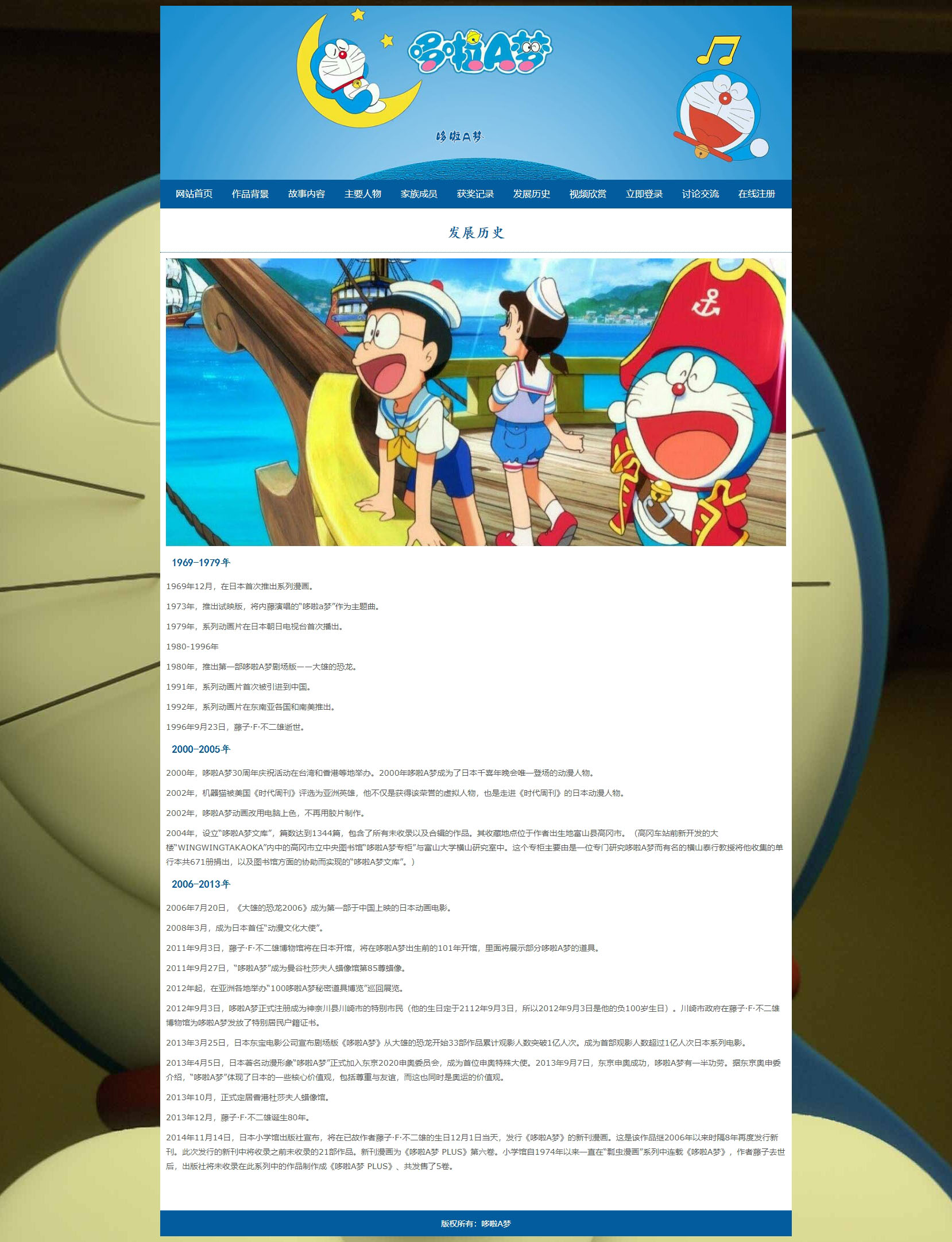 哆啦A梦 17页面 机器猫 日本漫画 HTML5 带设计说明 背景音乐 JS图片轮播特效 在线视频 (0/0)
