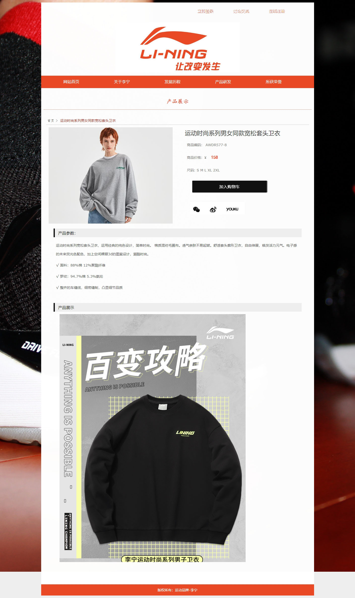 运动品牌-李宁 19页面 电商企业 体育品牌公司 HTML5 带设计说明 背景音乐 JS图片轮播特效 注册登录留言表单(0/0)
