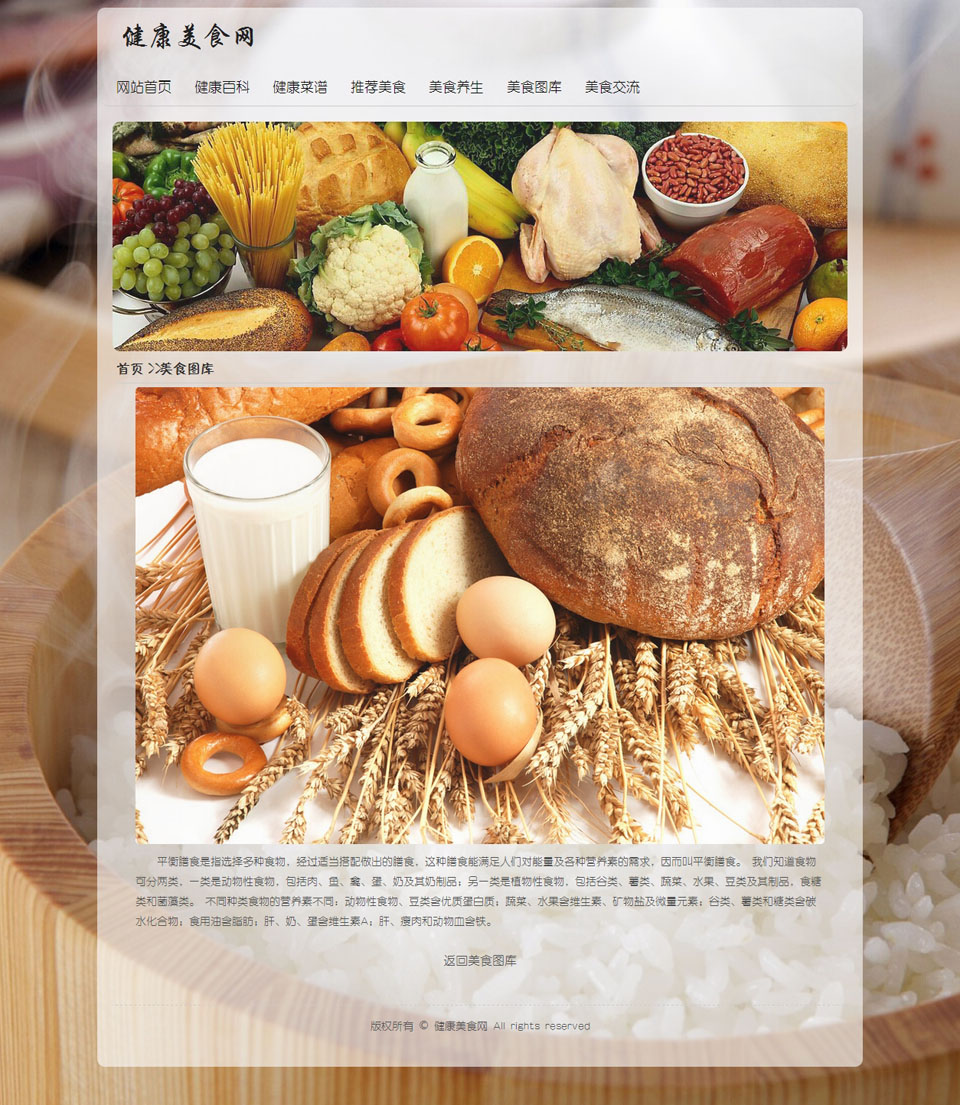 健康美食网 30页面 饮食养生健康主题 带设计说明 图片轮播特效 留言表单 背景音乐(0/0)