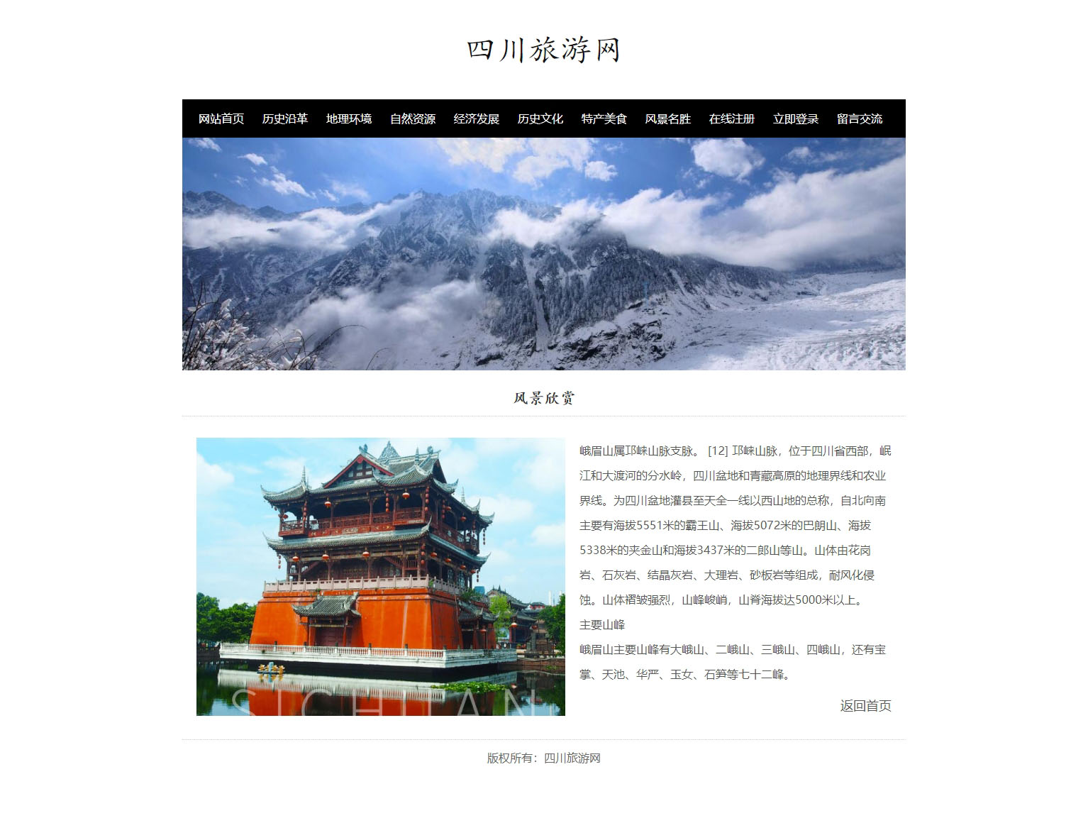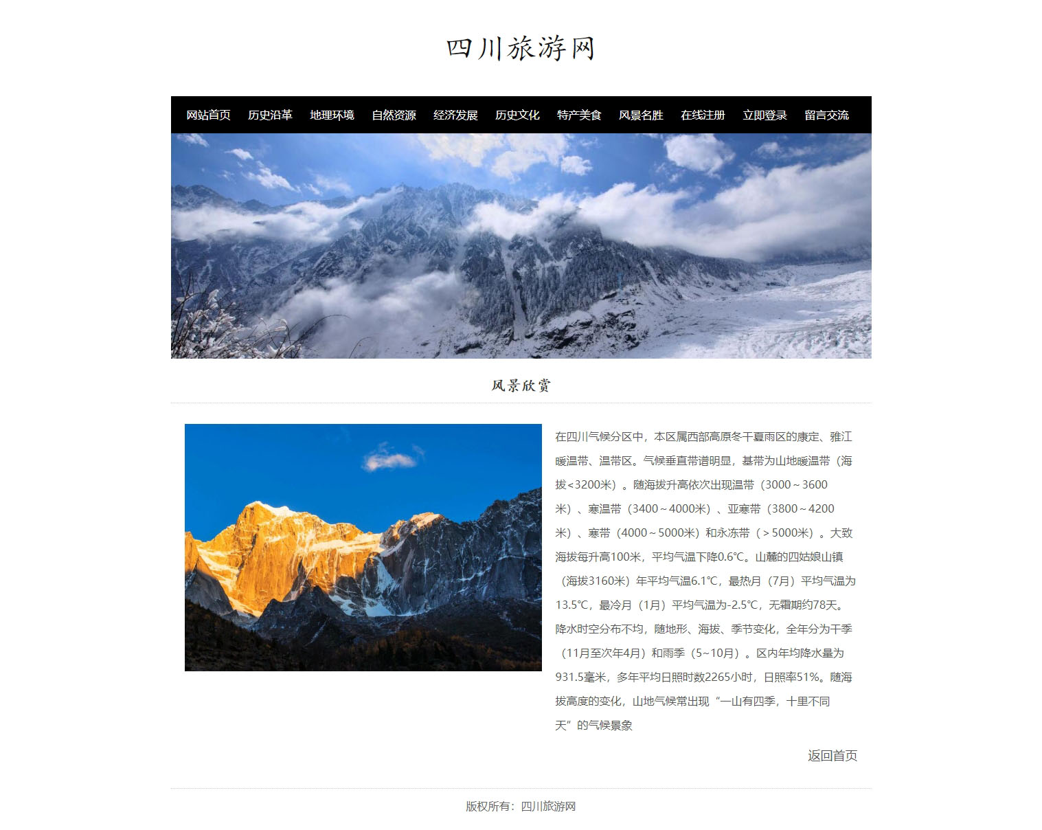 四川旅游网 32页面 HTML5 家乡旅游介绍 带设计说明 JS轮播特效 注册登录留言表单 JS表单验证(0/0)